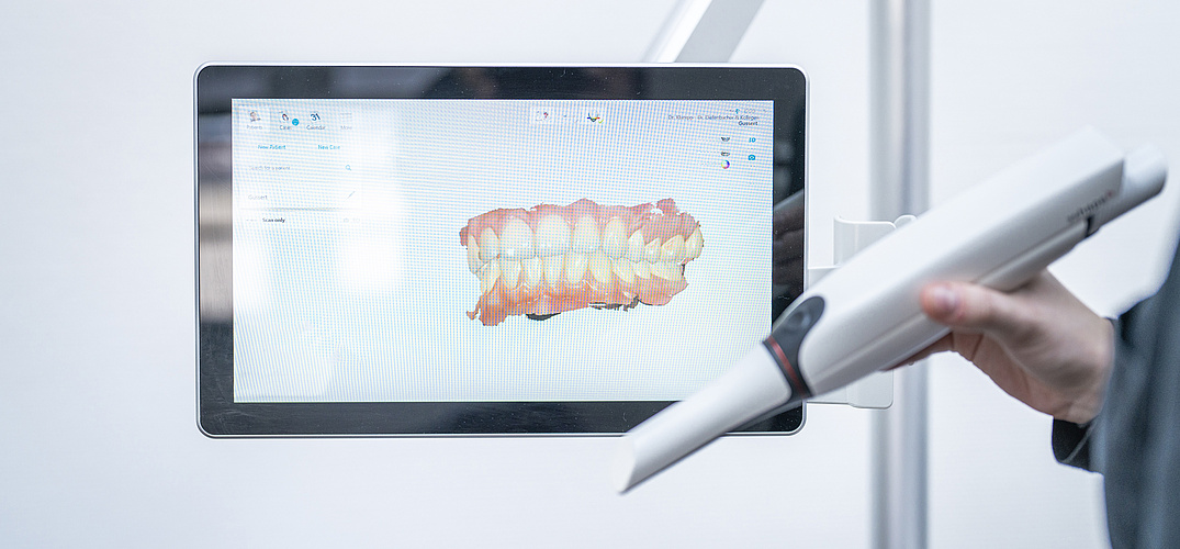 Wir möchten unseren Patientinnen und Patienten den Zahnarztbesuch so angenehm wie möglich gestalten und dabei besonders präzise Ergebnisse erzielen. Mit dem Einsatz unseres Intraoralscanners können wir digitale und detailgenaue Abbildungen Ihrer Zähne ganz ohne Abformmasse erzeugen.